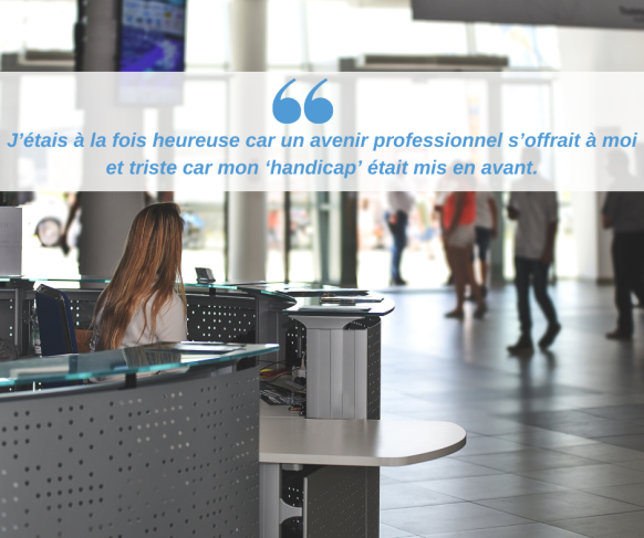 Quand j’ai obtenu ma notification MDPH, mes sentiments étaient mitigés. J’étais à la fois heureuse car un avenir professionnel s’offrait à moi et triste car mon ‘handicap’ était mis en avant. »